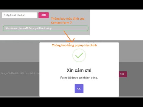 - Code trên đã bao gồm code css để ẩn thông báo mặc định của Contact form 7 và js để hiển thị thông báo popup luôn rồi nhé! bạn chỉ cần copy dán là xong
